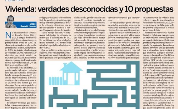 No hay una crisis de vivienda en España. Entre 2001 y 2021, el parque de viviendas aumentó 23,5%. Al mismo tiempo, la población total creció 15,3%. Incluso restringiéndonos a la población mayor de 25 años, su incremento, 21,7%, fue inferior al del número de viviendas. En 2021 había 450.000 viviendas […]